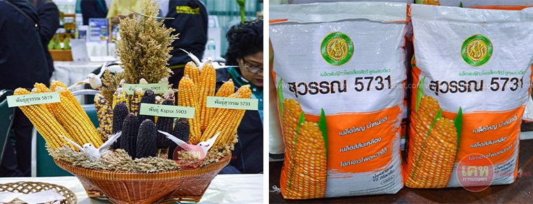 เมื่อมีพืชอาหารคนแล้ว ขอตามติดมาด้วยอาหารสัตว์ด้วยข้าวโพดเลี้ยงสัตว์ลูกผสมเดี่ยวพันธุ์สุวรรณ 5819 และสุวรรณ 5731 มีคุณสมบัติต้านทานโรคราน้ำค้าง และโรคทางใบได้ดี เหมาะสำหรับปลูกในฤดูต้นฝนและฤดูแล้ง ฝักมีขนาดใหญ่ เมล็ดใหญ่ สามารถนำไปใช้ปลูกทำข้าวโพดหมักได้ดี สำหรับผู้ที่สนใจมีเมล็ดพันธุ์แจกฟรีในงานหรือสอบถามเพิ่มเติมได้ที่เบอร์โทร 081-016-2351 อีเมล์ ijsrpc@ku.ac.th และเว็บไซต์ www.iicrd.ku.ac.th